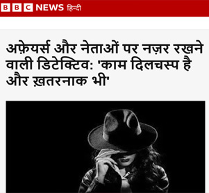 On December 24, BBC Hindi published an in-depth feature on Sleuths India Director Nidhi Jain, focusing on her remarkable journey and leadership credentials. The article traced her career shift from investment banking to private investigation, capturing her determination to carve a space in a profession known for its risks and complexities.
